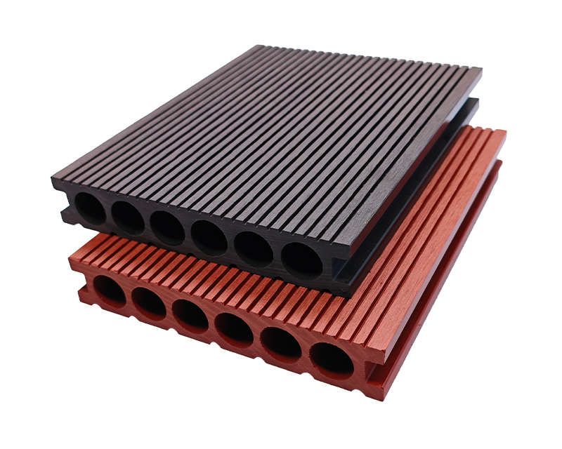 5.窄槽圆孔(直纹)地板,25×140mm 尺寸适配小空间,窄槽排水、圆孔透气,直纹表面统一整洁,家庭庭院小径、阳台休闲区铺装,实用与美观轻松拿捏 。