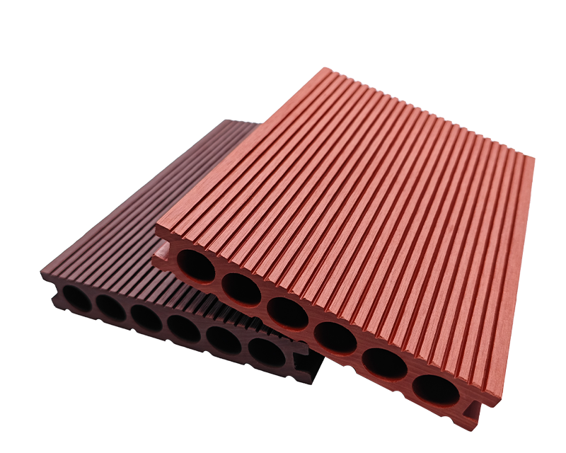 5.窄槽圆孔(直纹)地板,25×140mm 尺寸适配小空间,窄槽排水、圆孔透气,直纹表面统一整洁,家庭庭院小径、阳台休闲区铺装,实用与美观轻松拿捏 。