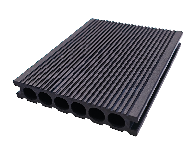 5.窄槽圆孔(直纹)地板,25×140mm 尺寸适配小空间,窄槽排水、圆孔透气,直纹表面统一整洁,家庭庭院小径、阳台休闲区铺装,实用与美观轻松拿捏 。