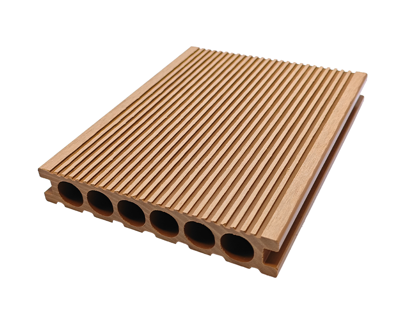 5.窄槽圆孔(直纹)地板,25×140mm 尺寸适配小空间,窄槽排水、圆孔透气,直纹表面统一整洁,家庭庭院小径、阳台休闲区铺装,实用与美观轻松拿捏 。