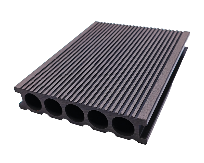 5.窄槽圆孔(直纹)地板,25×140mm 尺寸适配小空间,窄槽排水、圆孔透气,直纹表面统一整洁,家庭庭院小径、阳台休闲区铺装,实用与美观轻松拿捏 。