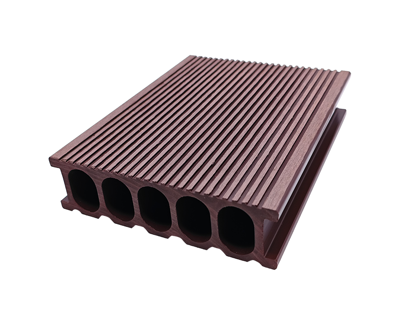 5.窄槽圆孔(直纹)地板,25×140mm 尺寸适配小空间,窄槽排水、圆孔透气,直纹表面统一整洁,家庭庭院小径、阳台休闲区铺装,实用与美观轻松拿捏 。