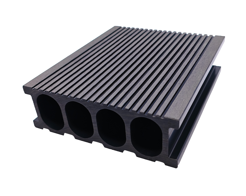 5.窄槽圆孔(直纹)地板,25×140mm 尺寸适配小空间,窄槽排水、圆孔透气,直纹表面统一整洁,家庭庭院小径、阳台休闲区铺装,实用与美观轻松拿捏 。