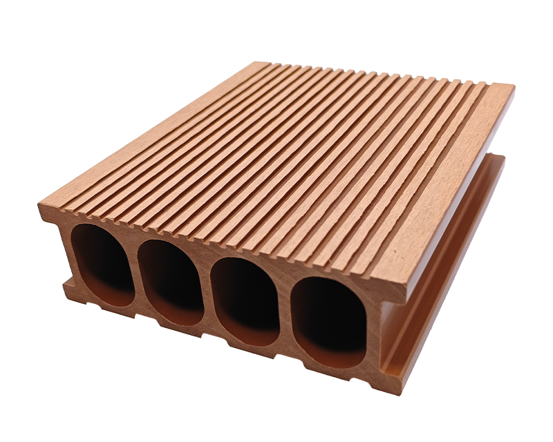 5.窄槽圆孔(直纹)地板,25×140mm 尺寸适配小空间,窄槽排水、圆孔透气,直纹表面统一整洁,家庭庭院小径、阳台休闲区铺装,实用与美观轻松拿捏 。